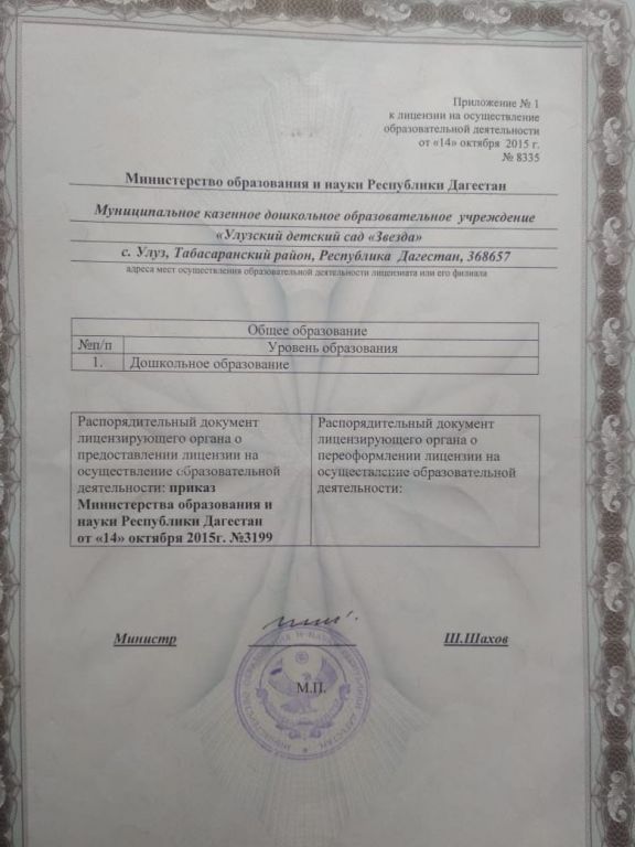 | Полное наименование образовательной организации* | Муниципальное казенное дошкольное образовательное учреждение "Улузский детский сад"Звезда" |